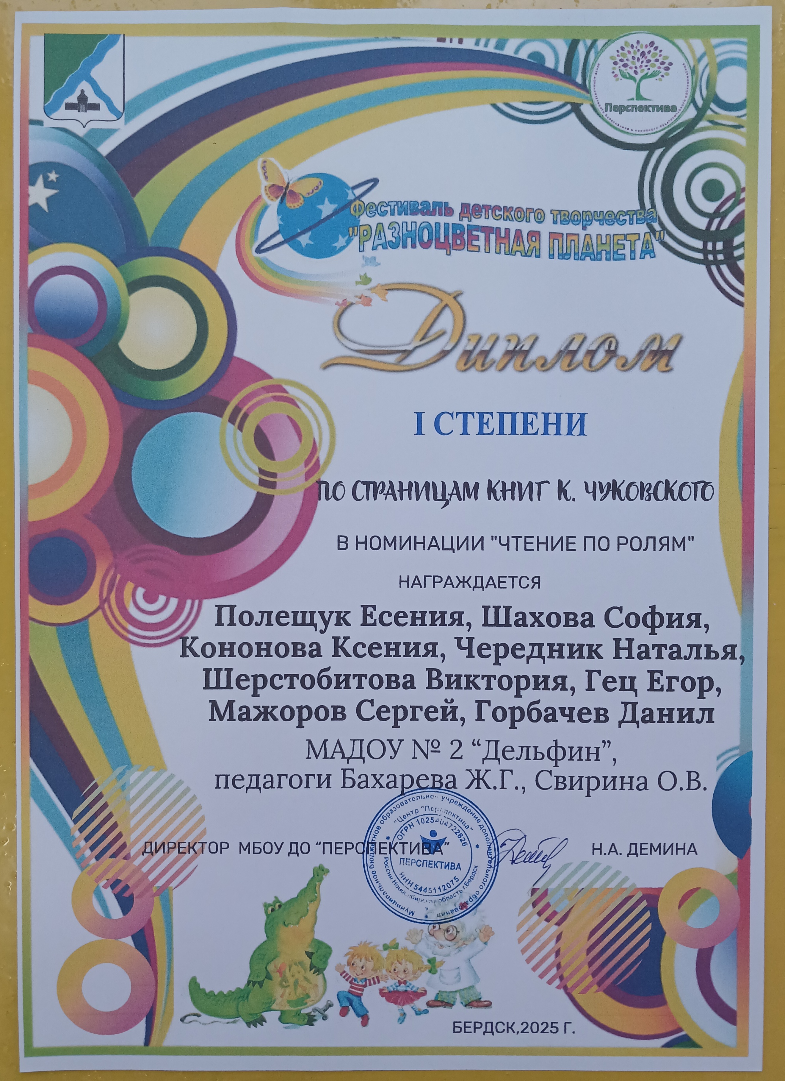Диплом l степени Фестиваль детского творчества " Разноцветная планета". ноябрь 2025г.